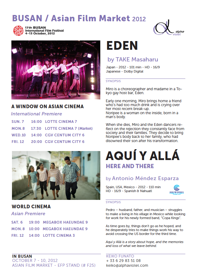 Keiko will attend Busan and the Asian Film Market from the 6th till the 11th of October.